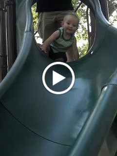 Since installing our own swingset in the backyard for Ledger's birthday, Locke has become very adept at climbing, sitting, and SLIDING all by himself. He's so stinkin' cute when he does it, but it worries Mommy that he's so darn precocious! Ahh, that's the way with babies growing up. So, here's some cute little videos of Locke sliding down the slide at the lake... all by himself!
